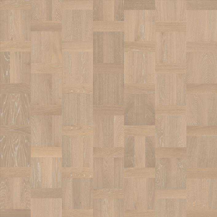 Este suelo de roble teñido de blanco de la Colección European Renaissance está colocado en un clásico e intemporal diseño holandés. Cada tabla se cepilla cuidadosamente para resaltar el carácter de la fibra y resaltar la textura natural de la madera. El acabado al barniz mate elimina el deslumbramiento y protege la madera del desgaste diario. El Roble Palazzo Blanco tiene un color uniforme con pequeñas variaciones. En su diseño tiene nudos de pequeño tamaño en cantidades limitadas. Esta tarima flotante de madera de roble tiene un diseño en forma de patrón.
