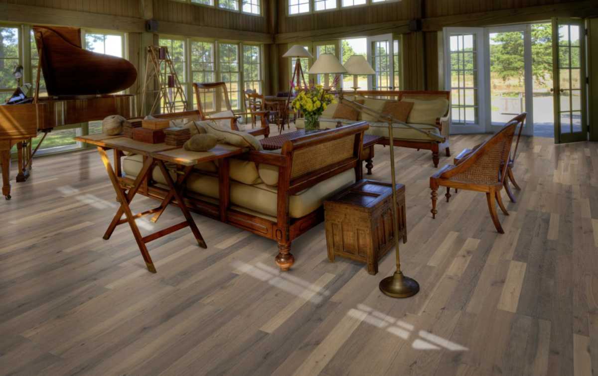 Este suelo aceitado de dos lamas de la colección Da Capo presenta una intencionada variación de color en las tablas, que va desde el gris neblinoso hasta los tonos de la arena húmeda para crear un aspecto dramático e intempestivo. Los nudos y las grietas en las tablas dan como resultado una expresión bellamente envejecida. Cada tabla se cepilla cuidadosamente para resaltar el carácter de la veta y resaltar la textura natural de la madera.