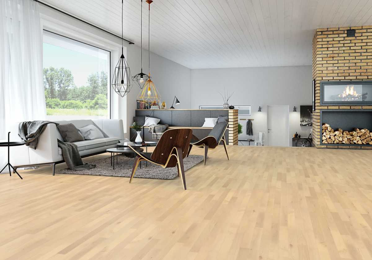 Sus excelentes propiedades de fuerza y su estructura uniforme hacen de ella una madera con una personalidad muy definida y por lo tanto apreciada. Madera natural al que aplicamos nuestro acabado Nordic dandole un ligero tono blanco para dar un toque escandinavo al suelo, realzando su elegancia.